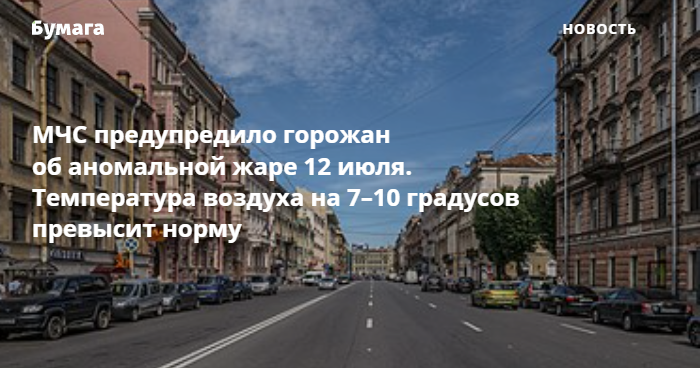 МЧС предупредило горожан об аномальной жаре 12 июля. Температура воздуха на 7–10 градусов превысит норму