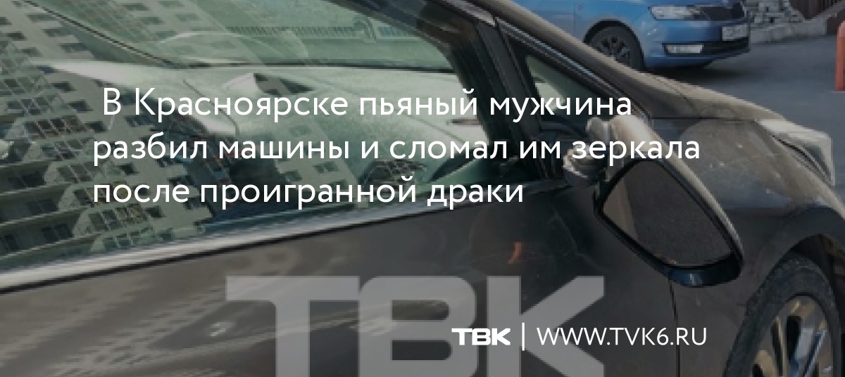 В Красноярске пьяный мужчина разбил машины и сломал им зеркала после проигранной драки