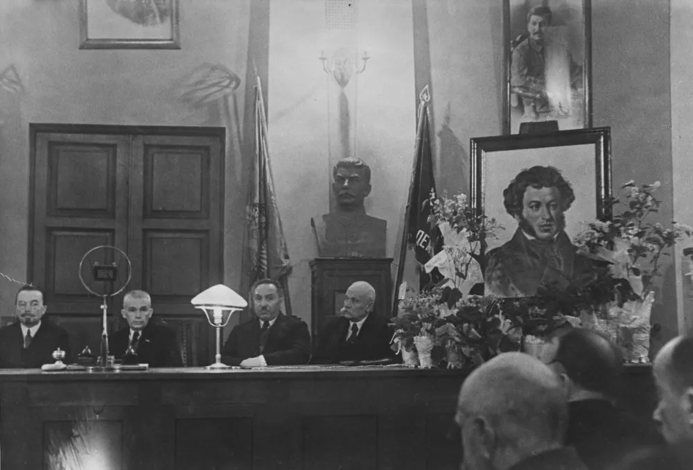 Открытие пушкинской сессии Академии Наук СССР. Ленинград, 13 февраля 1937 года. Источник