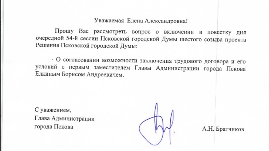 Глава администрации Пскова Александр Братчиков предложил назначить Бориса Ёлкина первым замглавы администрации муниципалитета: соответствующие документы представлены в Псковскую городскую Думу. Вопрос будет рассмотрен на 54-й сессии 15 июля.