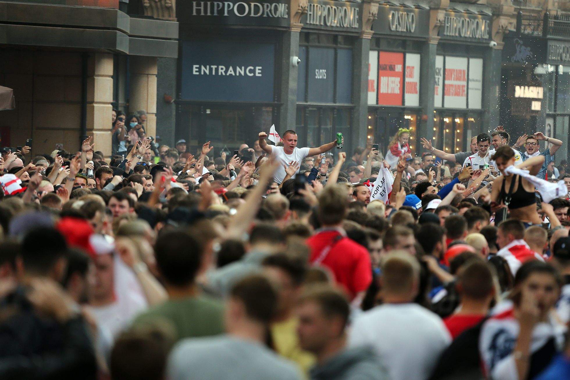 Особенно это чувствовалось на Лестер-сквер — площади, к которой из-за перекрытия Трафальгарской стекалась самая активная часть болельщиков. Сначала сотни, а потом и тысячи людей, уставших от локдаунов и ограничений, с радостью вливались в толпу и подхватывали песню или кричалку. В цветах английской сборной — и, как правило, без масок — можно было увидеть людей совершенно разного происхождения и цвета кожи.