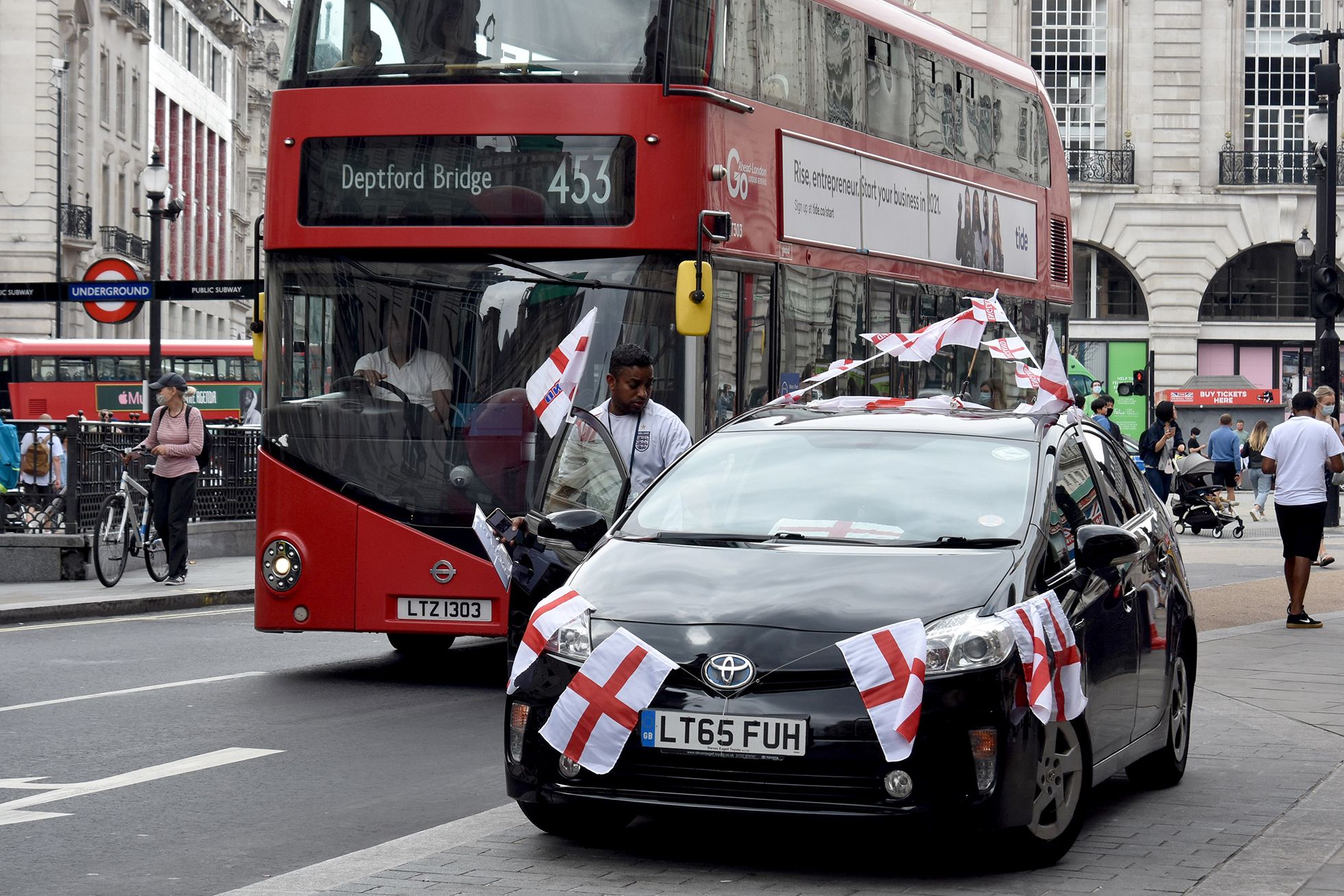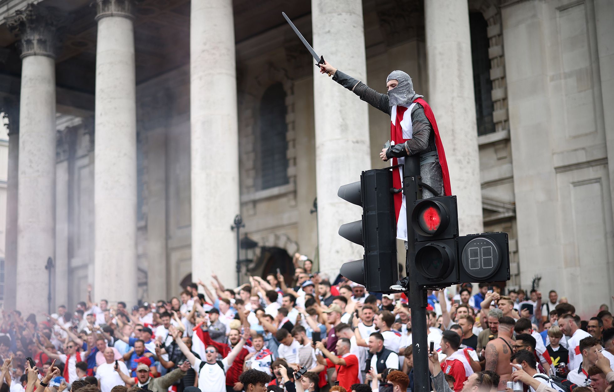 На следующий день после победы над датчанами в ½ — и за три дня до финала — центр Лондона неожиданно тих. От ночных празднеств, несмотря на их масштаб, не осталось и следа. Сложно догадаться, что всего сутки назад здесь произошло историческое событие: английская сборная впервые вышла в финал Евро. Никаких шарфов-«роз» на статуях львов у Британского музея — и даже флагов в витринах намного больше радужных, чем цветов английской сборной.