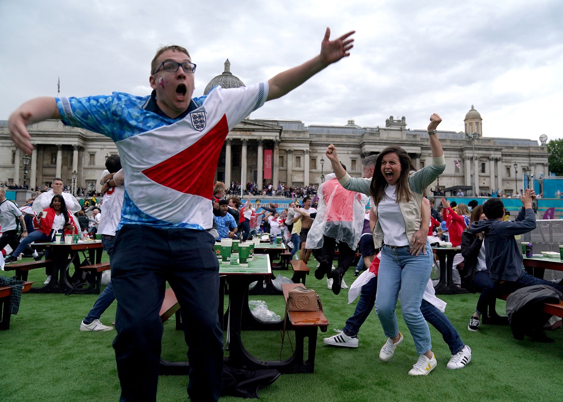 К субботе количество флагов в Лондоне значительно выросло. Люди прикрепляли их к автомобилям, вывешивали из окон, привязывали к рюкзакам. При этом в официальной фан-зоне на Трафальгарской площади, которая наконец-то открылась, было по-прежнему тихо. За столиками, оклеенными пленкой в виде футбольного поля, сидело человек сто. Они пили пиво и газировку, шутили, слушали музыку. Конечно же, прозвучала «Itʼs coming home».