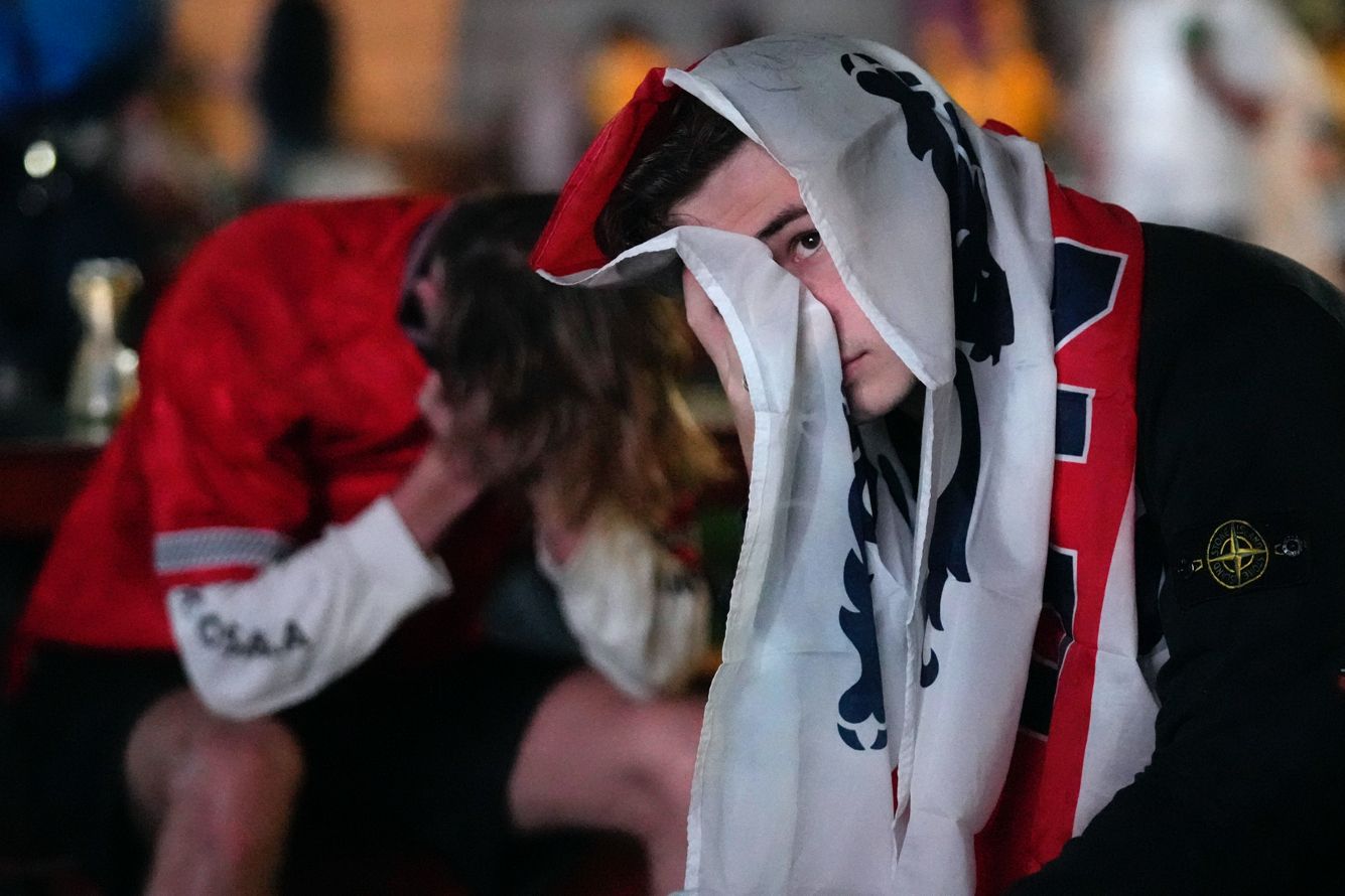Пока болельщики сборной Италии праздновали, в метро царило совсем другое настроение. Когда я зашла в вагон, там было довольно многолюдно — но тихо. Высокий стройный парень лет 20 в футболке сборной Англии сидел через кресло от меня и смотрел в пол. Сначала я подумала, что, может быть, ему плохо. Когда рукавом толстовки он вытер слезы, я поняла, что ему действительно плохо — но не от количества выпитого. Парень не отрывал взгляд от пола даже когда его друг прощался с ним и пожимал руку. На следующей остановке в вагон вошел плачущий мальчик лет десяти — с крайне расстроенным отцом — и стало совсем тоскливо. Пока доехала до центра, я видела еще много печальных мужчин.