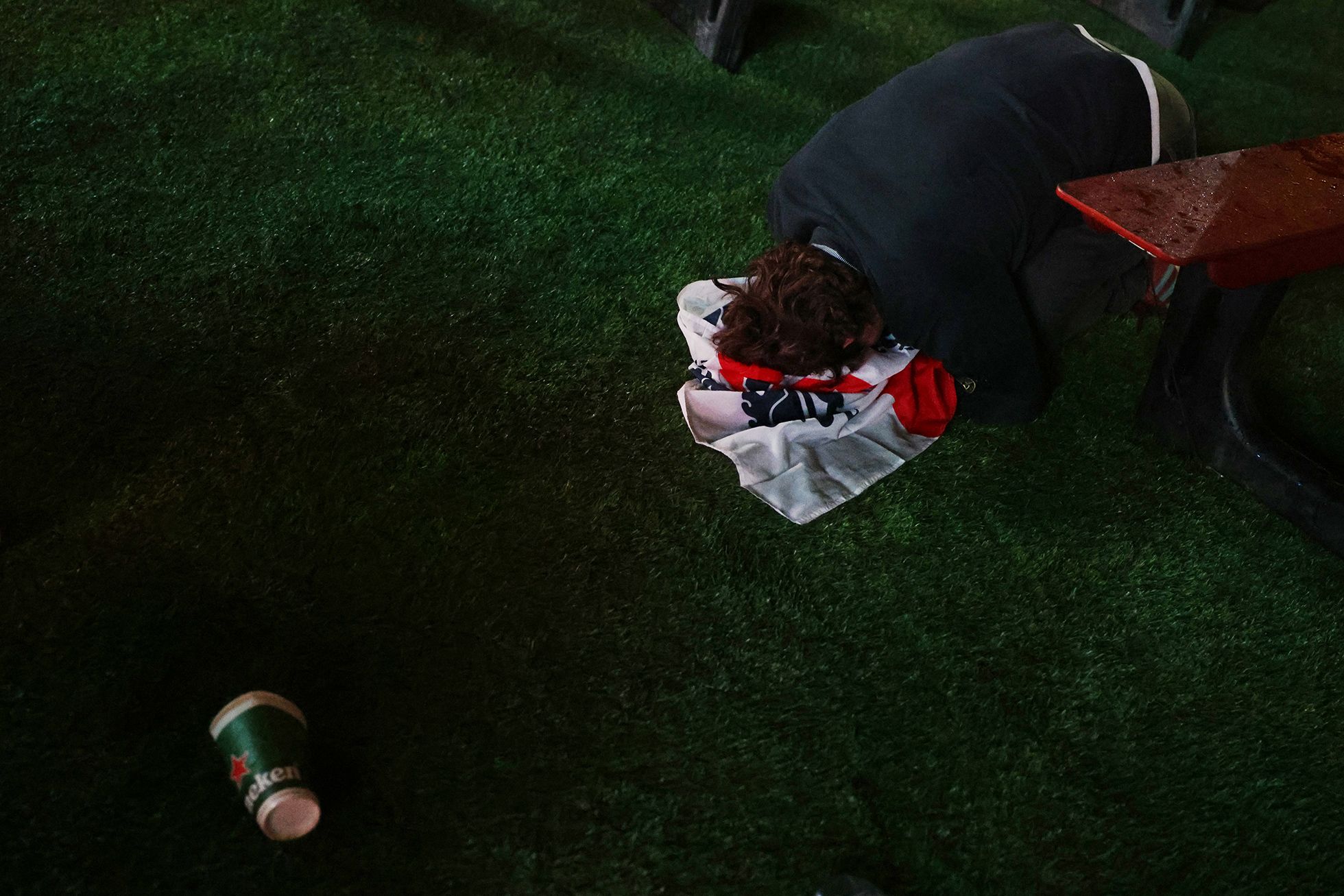 Но на улице люди в красно-белых одеждах выглядели уже бодрее. И свое горе вымещали в том числе и другими, более брутальными методами. У «Макдоналдса» толпа молодых людей с масками на лицах закидала бутылками группу из четырех парней, обернутых итальянскими флагами. Итальянцы не пострадали — в отличие от входа в фаст-фуд.