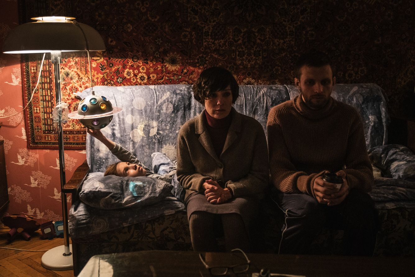На вопрос не отвечает, а как бы его отменяет выразительный и самобытный язык «Петровых в гриппе». Он не похож ни на что, и вызвал у меня ассоциацию разве что с инсталляциями британца Майка Нельсона, в которых из одних тщательно воссозданных комнат-декораций ты попадаешь в другие, такие же правдоподобные, но никак не связанные с предыдущими. Серебренников снял фильм-лабиринт, где без склеек — иногда в буквальном смысле, виртуоз-оператор Владислав Опельянц здесь творит чудеса, — ты путешествуешь по измерениям, теряя чувство ориентации во времени и пространстве. На этот эффект работает и идиосинкратический саундтрек, в котором «Ноль» и «ГрОб» вдруг перемежаются арией Генделя или концертом Вивальди, исполненными на аккордеоне.