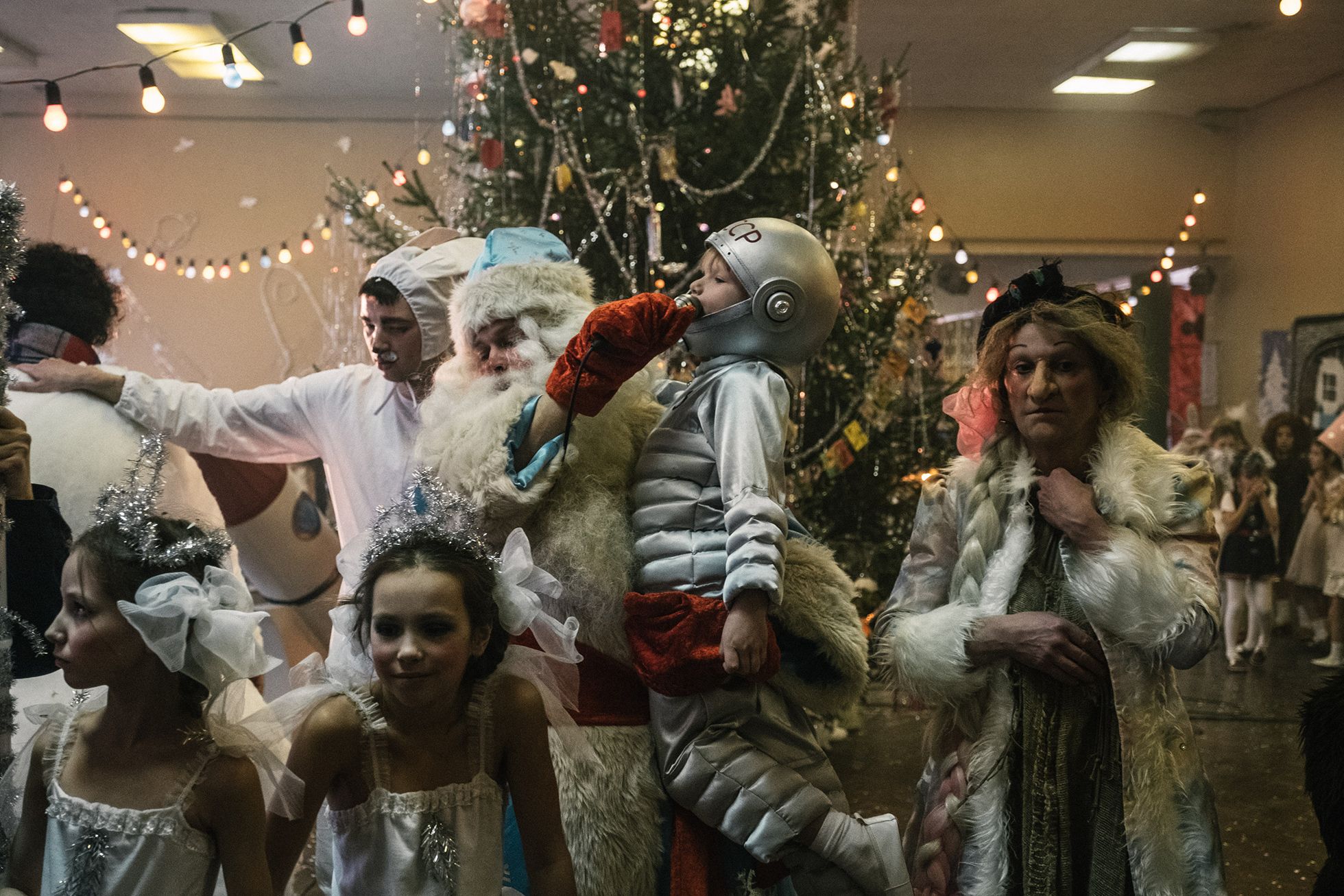 Особенно трогательно и по-ренессансному красиво смотрится пара нагих родителей Петрова (Варвара Шмыкова и Иван Ивашкин) — чистые Адам и Ева с картины Северного Возрождения. Ведь эта петровская Книга Бытия началась именно с отправки маленького еще героя в свитере хоккеиста на костюмированную Елку.
