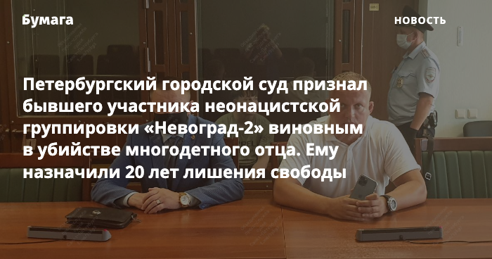 Петербургский городской суд признал бывшего участника неонацистской группировки «Невоград-2» виновным в убийстве многодетного отца