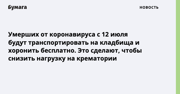 Умерших от коронавируса с 12 июля будут транспортировать на кладбища и хоронить бесплатно