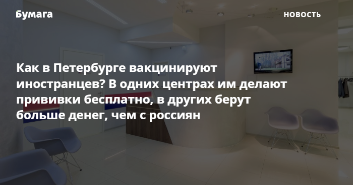 В клинике «Медика» «Бумаге» сообщили, что прием врача перед вакцинацией стоит 1500 рублей, но попросили иностранцев брать с собой ОМС и СНИЛС. Такие же документы должны предоставлять граждане России. А в «РеаСанМед» рассказали, что не прививают иностранцев.