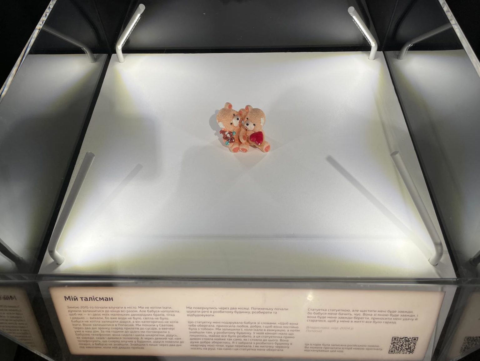 В том, что дети с опытом травмы отдают вещи, напоминающие о ней, волонтер видит позитив – значит, понемногу отпускают пережитое. Показывает маленькую статуэтку – фигурки медвежат. Хозяйка, Влада, нашла ее на развалинах дома, где от прямого попадания снаряда погибли ее дедушка и бабушка. Бабушка хотела выехать на мирную территорию, но не дожила до эвакуации буквально день.