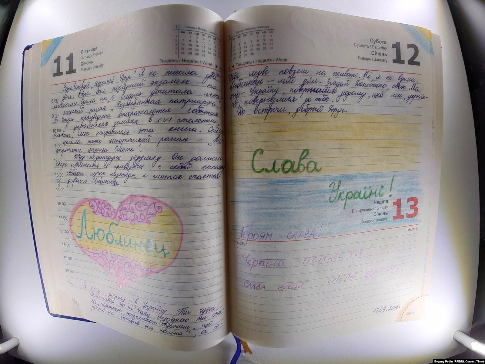 "Это книжечка Жени. Ее дом был полностью разбит минами. Было прямое попадание, ее мама и брат погибли. Мама сразу, а брат – когда ему делали операцию и не смогли спасти".