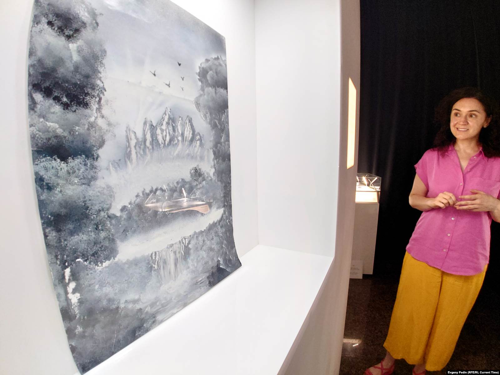 Но чаще дети делятся своим имуществом легко. Пейзаж с водопадом, лесом и горами сопровождается подписью от юной художницы Иры: "Если что-то отдавать в музей, то что-то красивое".