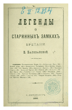 Работа над созданием обширной библиотеки Бестужевских курсов не означала, что Екатерина Вячеславовна потеряла интерес к бретонскому языку, фольклору кельтов и других народов Европы. В XIX столетии было модно публиковать фольклорные тексты в литературной обработке, продолжая традицию «Оссиановых песен» Макферсона, с которыми Екатерина была хорошо знакома. Благодаря ее блестящим пересказам русские читатели ознакомились со множеством легенд, в том числе с теми, которые юная Екатерина лично записала во время своих путешествий. Среди них — «Легенды о старинных замках Бретани», вышедшие в 1896 году, популярные в Росси до 1917 года и позже практически забытые вплоть до 1990-х годов. (Около месяца назад эта книга вышла на французском языке в переводе Патриса и Виктории Лажуа (Patrice Lajoye, Victoria Lajoye) и вызвала живой интерес читателей.)