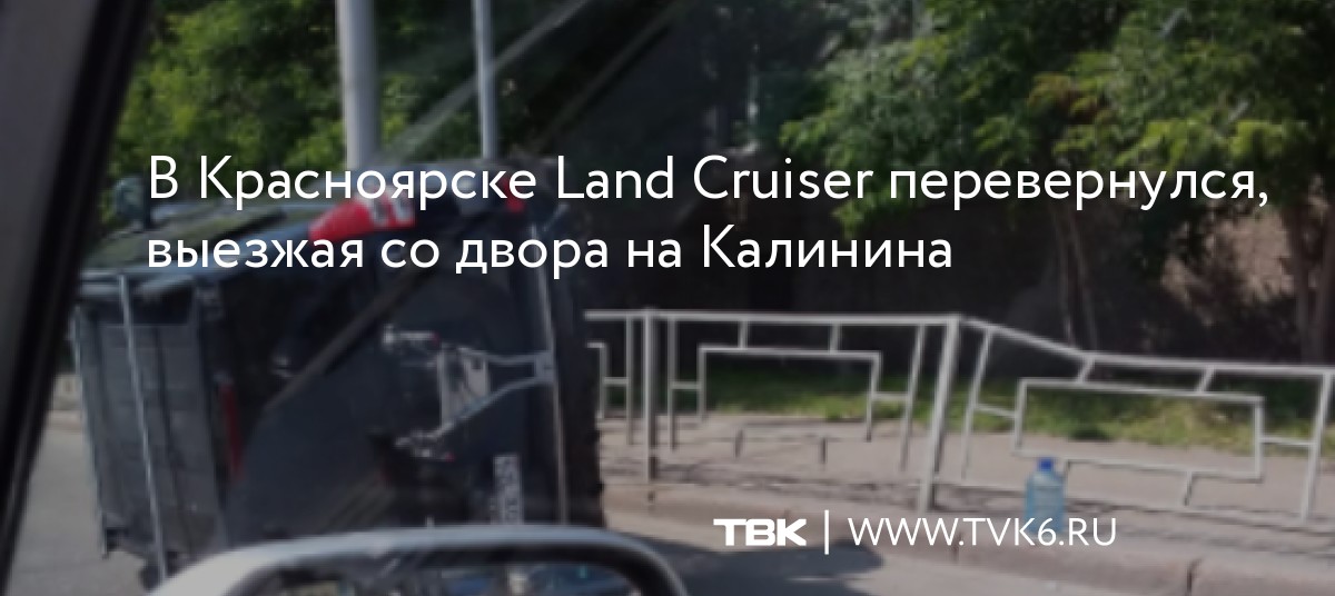 В Красноярске Land Cruiser перевернулся, выезжая со двора на Калинина