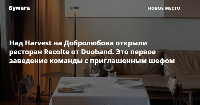 🔗 «Бумага» рассказывала, как устроен ресторан Harvest от команды Duoband.
