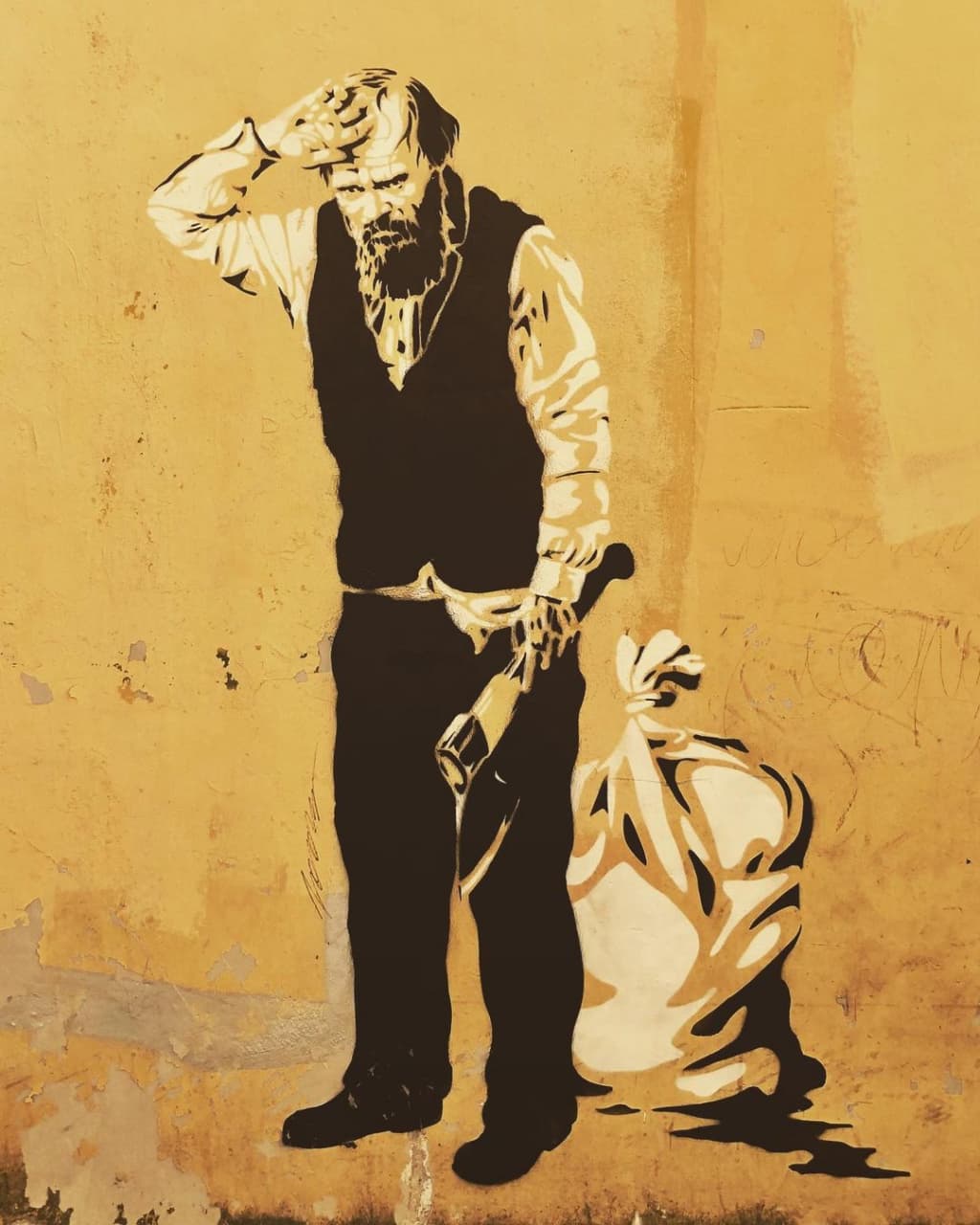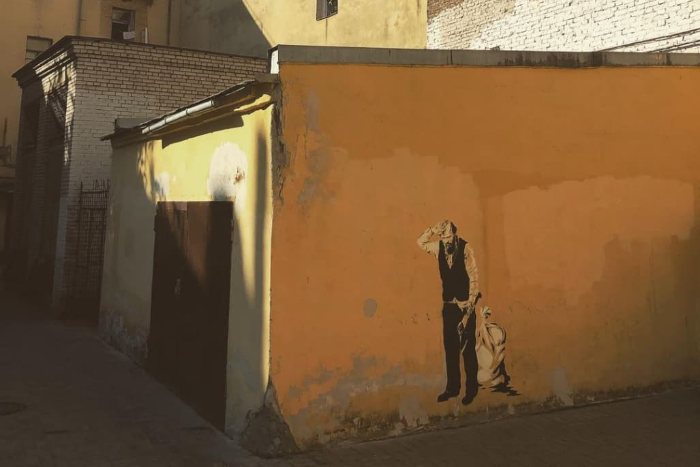 Московский художник Zoom создал в Петербурге работу «Достоевский расчленяет либеральную идею». Об этом он рассказал в инстаграме.