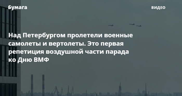 Утром 14 июля над Центральным, Адмиралтейским, Петроградским и Василеостровским районами Петербурга пролетели военные самолеты и вертолеты. Внимание на это обратили читатели и сотрудники «Бумаги».