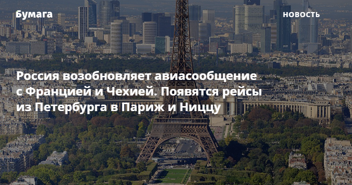 Россия возобновляет авиасообщение с Францией и Чехией