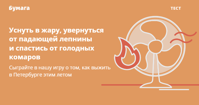 У петербуржцев этим летом СНОВА много поводов для жалоб — аномальная жара, нашествие комаров и постоянные перекрытия дорог. К тому же в городе всё еще высокая заболеваемость коронавирусом. Пройдите наш тест и проверьте, насколько успешно вы справляетесь со всем этим.