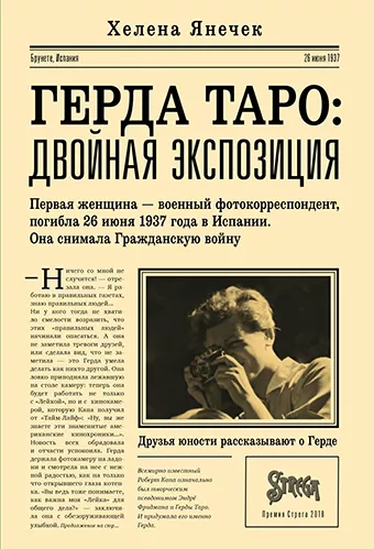 Документальный роман Хелены Янечек «Герда Таро. Двойная экспозиция» рассказывает историю фотокорреспондентки и участницы антифашистского сопротивления, на долгое время оказавшуюся в тени своего более известного товарища и близкого друга Роберта Капы. Публикуем отрывок из этой книги о непродолжительной, но яркой жизни одной отважной женщины.Хелена Янечек. Герда Таро. Двойная экспозиция. М.: ИД «Книжники», 2021. Перевод с итальянского Ольги Ткаченко. Содержание