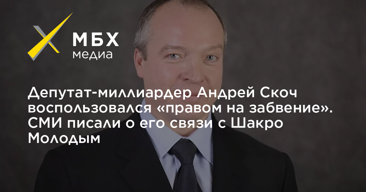Депутат-миллиардер Андрей Скоч воспользовался «правом на забвение». СМИ писали о его связи с Шакро Молодым