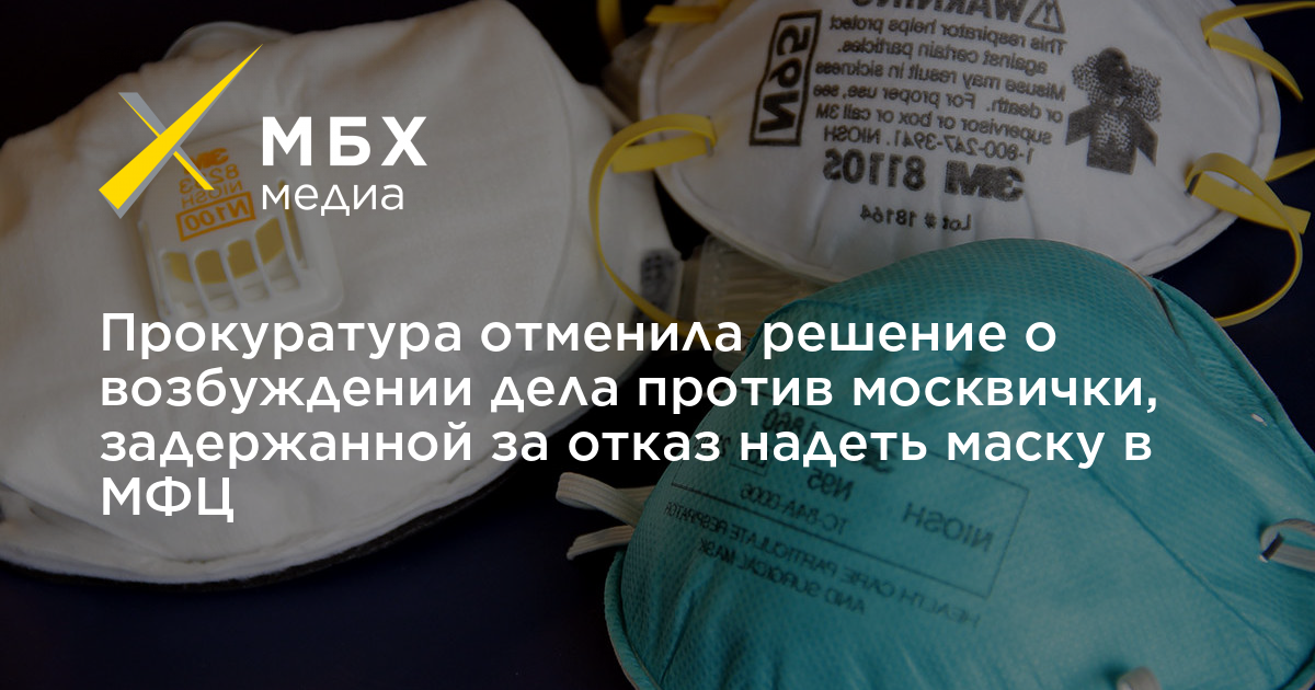 Прокуратура отменила решение о возбуждении дела против москвички, задержанной за отказ надеть маску в МФЦ
