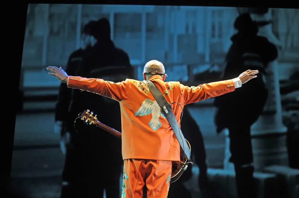 Он спел подряд «Голубя» и «Муху» — два текста, посвященных, в общем-то, одному и тому же: нашему неумению видеть и ценить прекрасное, нашей зашоренности привычным и приличным. И оба они осознанно встроены в русскую поэтическую традицию, продолжая и «вскрывая» ее. «Голубь» отсылает к пушкинскому «Пока не требует поэта к священной жертве Аполлон» («И меж детей ничтожных мира, Быть может, всех ничтожней он» /«Я самый плохой, я хуже тебя. Я самый ненужный, я гадость, я дрянь»; «Но лишь божественный глагол До слуха чуткого коснется Душа поэта встрепенется Как пробудившийся орел» /«Зато я умею летать»). «Муха» же содержит парафраз стихотворения с тем же названием, принадлежащего обэриуту Николаю Олейникову («Бывало, возьмешь микроскоп, На муху направишь его — На щечки, на глазки, на лоб»/ «Муха моя как пряник Толстая и блестит»).