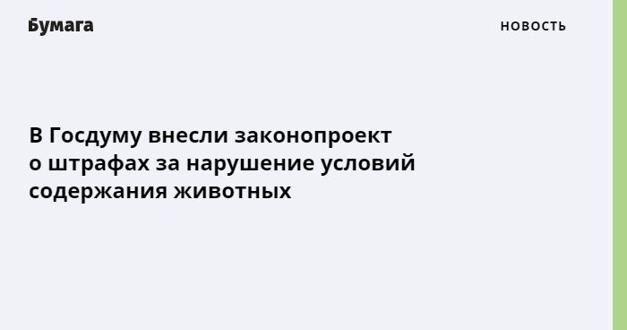 В Госдуму внесли законопроект о штрафах за нарушения в обращении с животными.