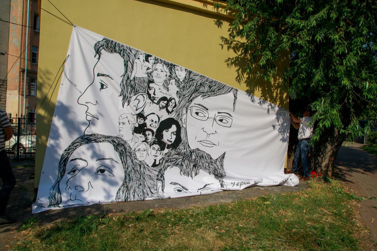 Плакат с изображением адвоката Станислава Маркелова, журналистов Анны Политковской и Анастасии Бабуровой, правозащитником Натальей Эстемировой и политиком Борисом Немцовым появился на будке в ночь на 15 июля, в годовщину убийства Эстемировой. Авторы изображения неизвестны.