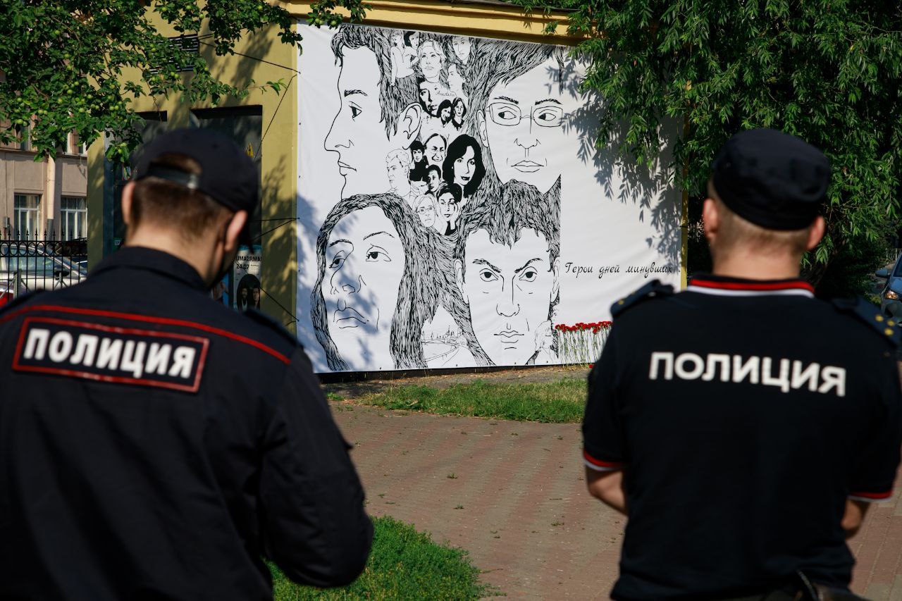 Полиция в Санкт-Петербурге сняла с трансформаторной будки в Пушкарском саду в центре города плакат с изображением журналистов, политиков и правозащитников, убитых в России. Об этом сообщает ЗакС.ру.