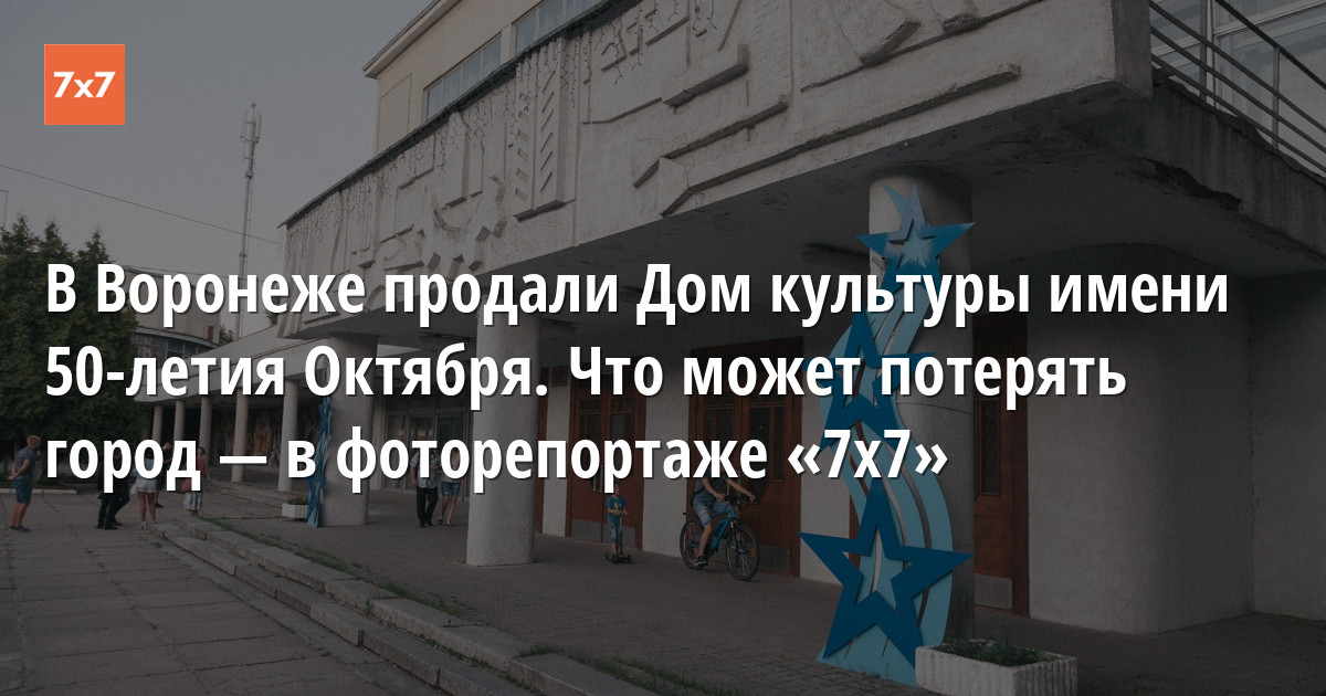 Воронежские градозащитники выступили против сноса Дома культуры имени 50-летия Октября. Здание, принадлежавшее государственному космическому научно-производственному центру имени Хруничева, в начале июня выкупил местный застройщик — финансовая компания «Аксиома». По мнению общественников, на его месте может появиться жилой квартал. Что могут потерять воронежцы — в фоторепортаже «7x7».