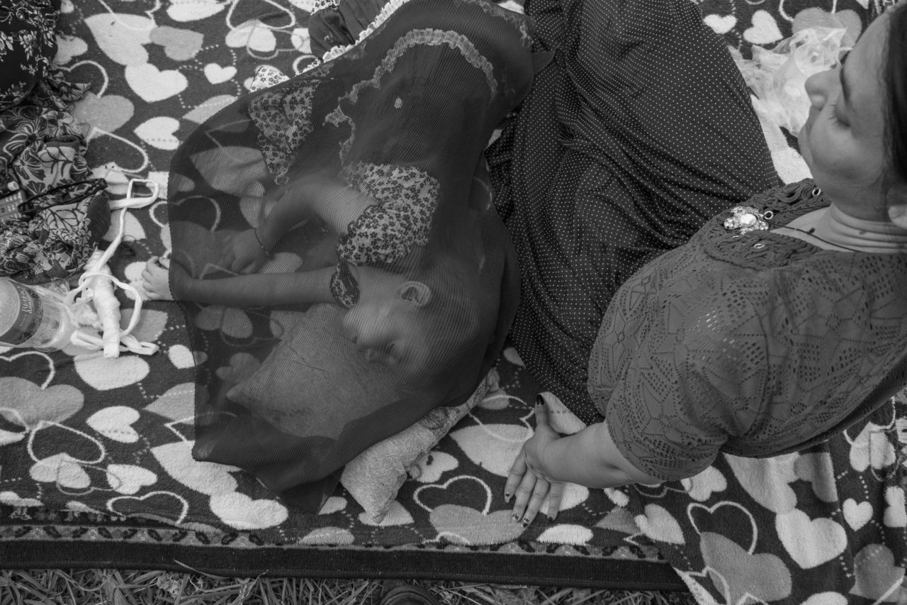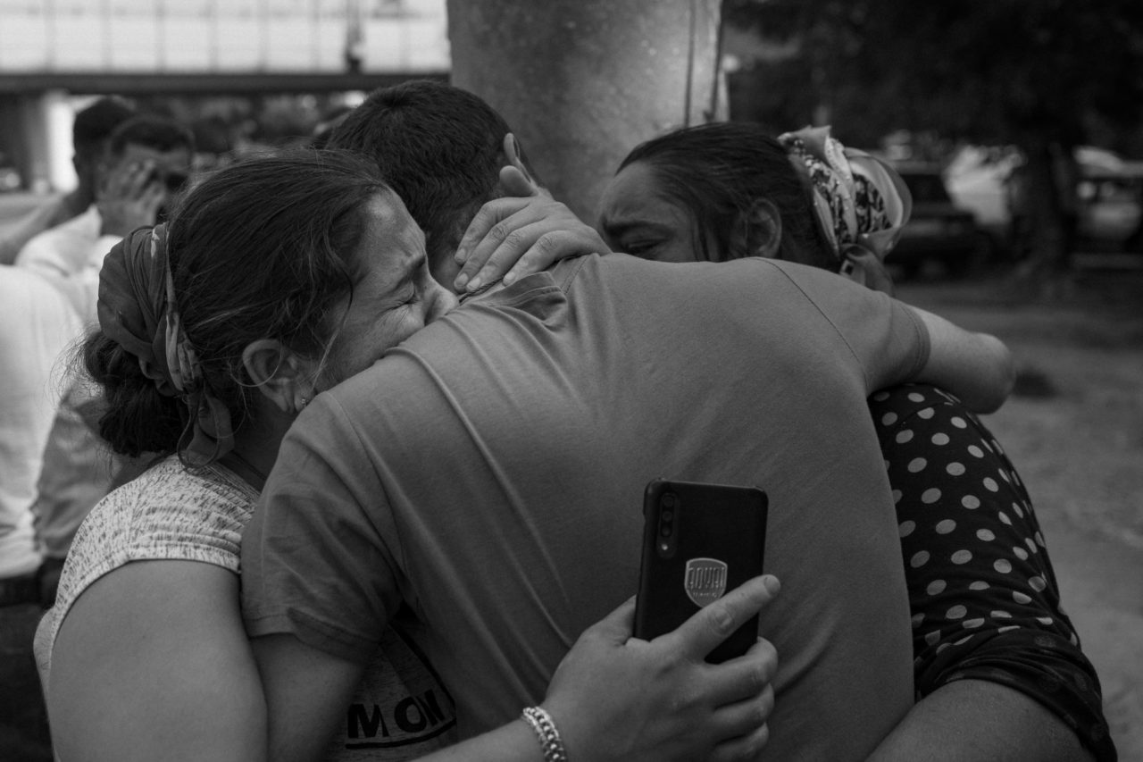 «Тут все мученики пришли! Вот страдаем, страдаем!» — перебивает ее другая и срывается на крик. Ее подхватывают другие, и через несколько секунд слов в толпе уже не разобрать. Периодически женщины переходят на свой язык.