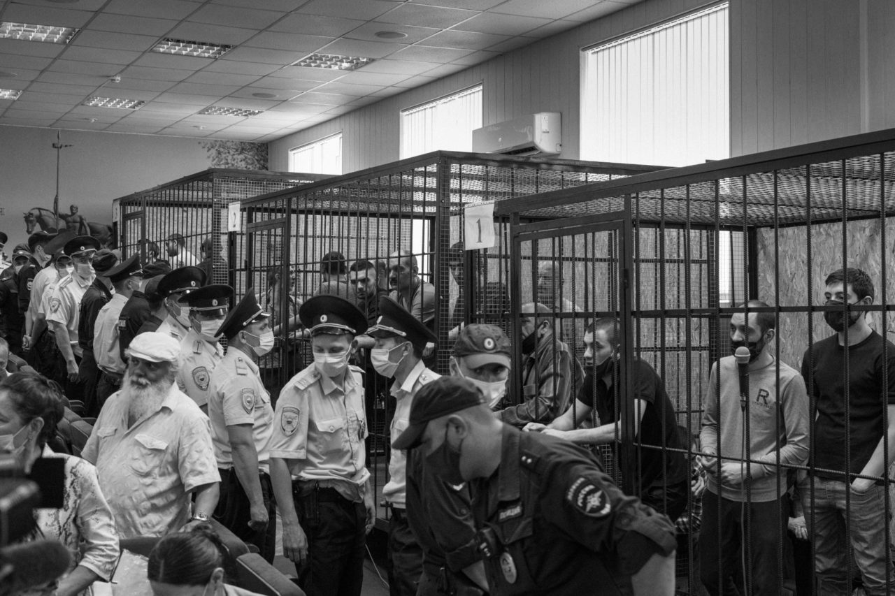 В зале суда во время вынесения приговораФото: Стоян Васев для ТД «Уважаемая прокурор Атаева нам попросила сроки от четырех с половиной до 11 лет, — говорит судьям Николай Викторович Юрченко во время своего последнего слова. — Может, мои слова будут такими некорректными и необоснованными, я прошу извинения сразу за такой неделикатный вопрос. Но она [Атаева] сама мать, она сама женщина, она — очаг в своем доме. И нам попросила эти года. За что? <…> За то, что мы защищали своих матерей, свои дома, детей и жен? Она сама — мать, у нее свои дети, у нее свой муж есть, он будет точно защищать…»
