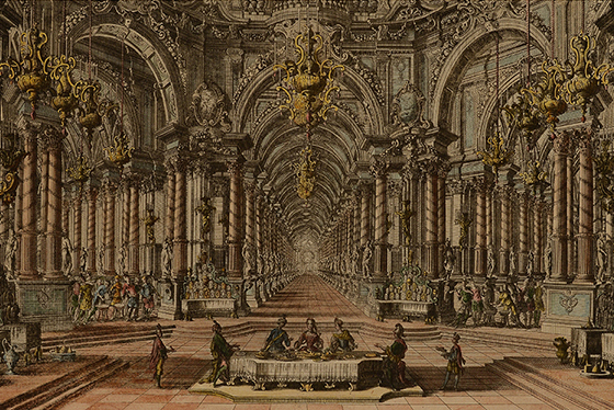 В Большом дворце музея-заповедника «Царицыно» можно будет увидеть работы придворных театральных декораторов, оригинальные проекты самых известных театров Екатерины II, автографы написанных рукой императрицы либретто опер, оригинальные и восстановленные театральные машины из коллекции Петра Айду, театральные костюмы и предметы театральных интерьеров XVIII века.