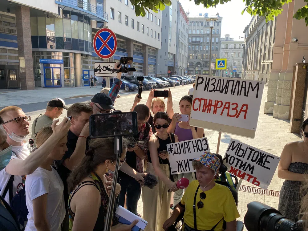 Москвич со СМА проводит одиночный пикет у Минздрава из-за отказа предоставить лекарство. Его пригласили в Общественную приемную