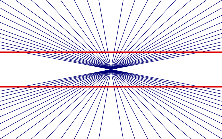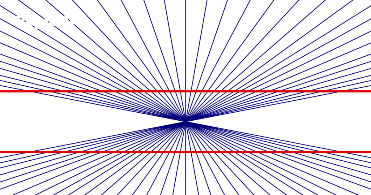 Иллюзия Геринга: даже если мы знаем, что две горизонтальные линии на самом деле прямые, нам они кажутся дуговидно изогнутыми.