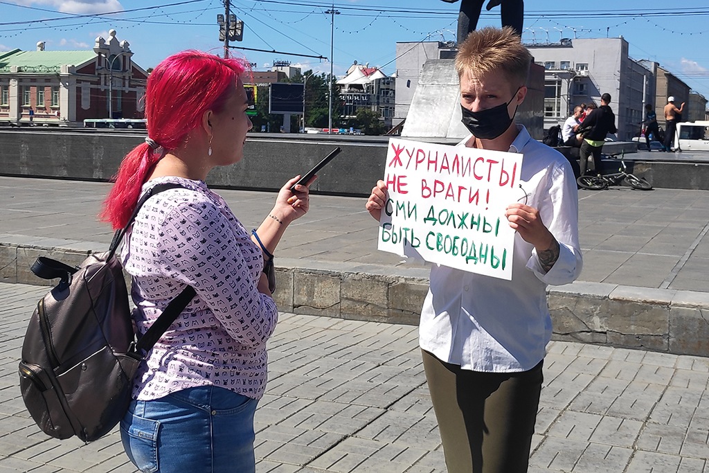 Акции солидарности с журналистами, признанными иностранными агентами, проходят в центре Новосибирска. Сотрудники СМИ заявили о цензуре и фактическом уничтожении профессии в России.