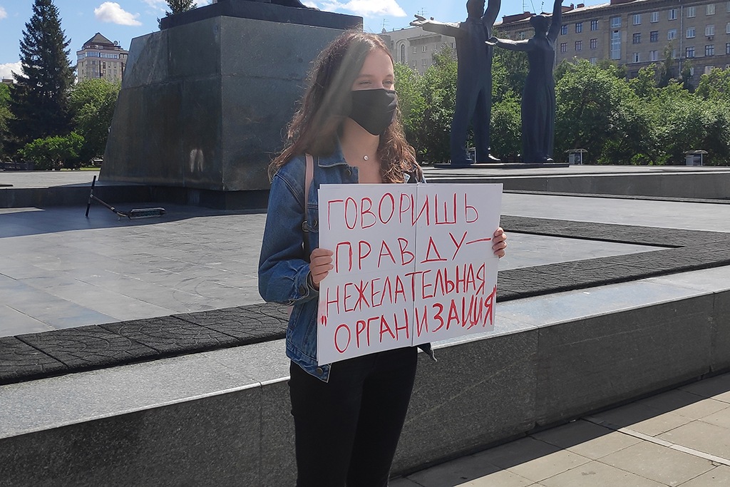 Журналистка НГС Маша Вьюн пришла на площадь с плакатом «Говоришь правду — нежелательная организация».