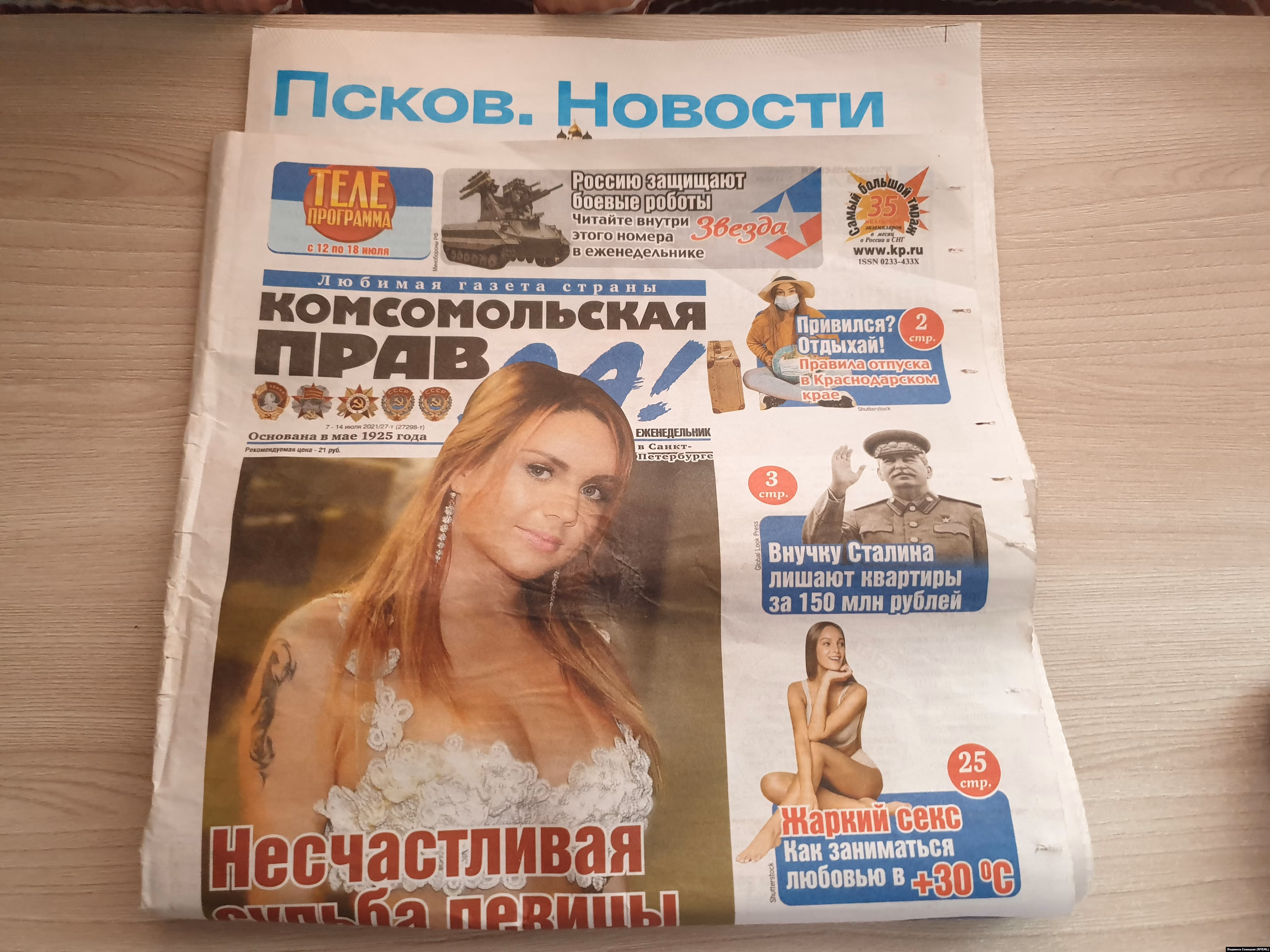 Избирательная комиссия Псковской области отказала региональному отделению партии "Яблоко" в жалобе на возможную незаконную агитацию "Единой России" в газете "Комсомольская правда" с рекомендациями о "жарком сексе в +30" на обложке. Ее псковичам бесплатно раздавали на улицах. Об этом корреспонденту Север.Реалии сообщил депутат гордумы Дмитрий Пермяков.