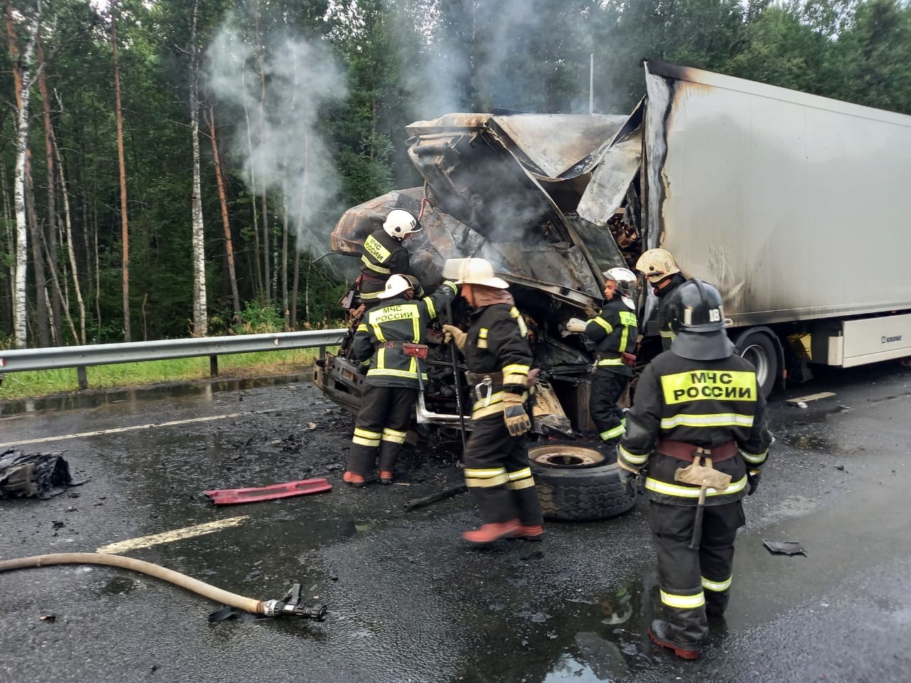 От удара кузов «МАЗ» сильно деформировался, машина загорелась. 40-летний водитель фуры скончался на месте происшествия.