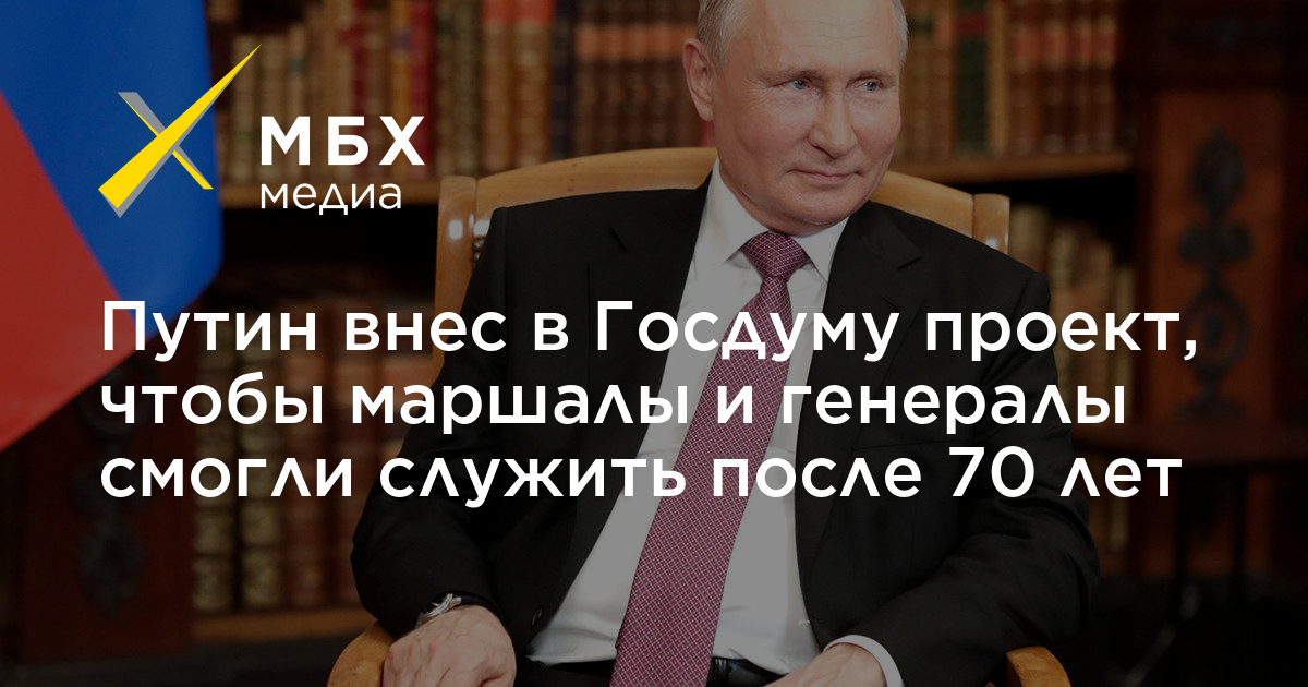 Президент Владимир Путин внес в Госдуму законопроект, по которому он сможет увеличивать предельный возраст пребывания на военной службе для маршалов, генералов армии и адмиралов флота, сообщает ТАСС.
