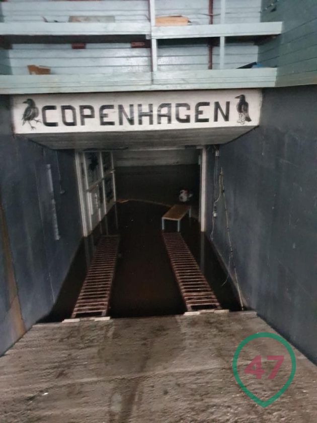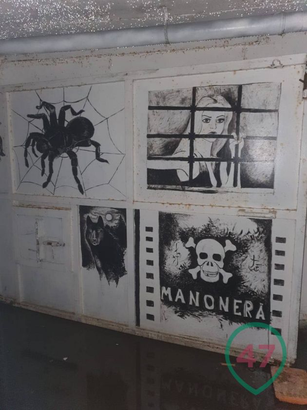 Surrounded by a mostly collapsed fence, the two-story building Smirnov and Karov found had what appeared to be a garage opening that once contained a powerful hydraulics system used to raise and lower a heavy concrete slab. The compound’s gates were decorated with drawings of a wolf, a spider, a woman behind bars, and skull and crossbones with the inscription “Manonera” (a type of Italian extortion racket). Above the entrance, there was a sign that read “Copenhagen.”