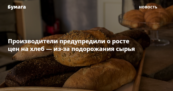 Среди причин подорожания хлеба — рост цен на сырье. Например, президент Российского союза пекарей Алексей Лялин рассказал, что за последний год стоимость маргарина выросла на 38 %, упаковочных материалов — на 26 %, сахара — на 9 %. Специалисты также отмечают, что в отрасли наблюдается дефицит персонала, поэтому производителям пришлось повысить зарплаты оставшимся сотрудникам.