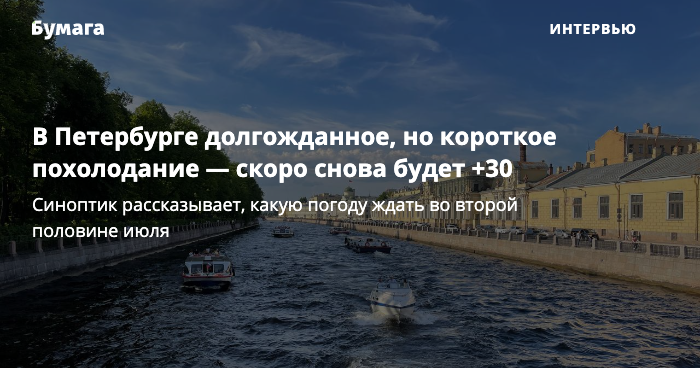 В Петербург спустя полмесяца аномальной жары пришло похолодание. В ближайшую неделю температура воздуха будет колебаться в пределах +20–25 градусов. «Бумага» поговорила с главным синоптиком Петербурга Александром Колесовым о том, надолго ли пришла прохлада, понизится ли температура в озерах и стоит ли ждать дождей и гроз.