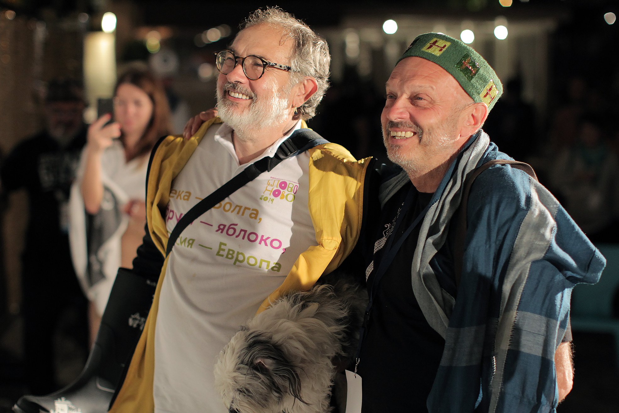 – "Фабрика", Центр технического творчества. Три проекта. один, который мы готовим с Комаром и Меламидом в Третьяковской галерее, перенесен на октябрь, а три проекта на "Фабрике". Самое большое событие – выставка "Жизнь как праздник" группы "Мир". Это два одесских художника – Сергей Ануфриев и Игорь Гусев. Ануфриева в Москве знают, он был частью группы "Медгерменевтика" – Пепперштейн, Ануфриев, Лейдерман, в 90-е годы надежда московского концептуализма. Он родом из Одессы, и забавно, что три надежды московского концептуализма, два из них были одесситы – Лейдерман и Ануфриев. Гусев – сегодня самый яркий и интересный живописец в Украине. Группа "Мир" – это была такая игра с нашей "Войной", потому что, по их позиции, художники-акционисты – прекрасные, замечательные, они герои, но не художники, поэтому нужны художники, которые их изображают. Часть выставки – это их картины, в которых акционисты со всего мира – Марина Абрамович, Ай Вэйвэй, все эти художники как герои, которых надо живописать. И вторая часть, то, что интересует Ануфриева, – что искусство начинает говорить там, где не властна логика, рациональное. Они придумали свой технологичный способ делать мистические произведения, не будучи никакими мистиками. Есть искусство рациональное, к нему вопросов нет, но есть искусство мистическое, оно создается, когда художник в определенном состоянии. Там много работ, это очень любопытно.