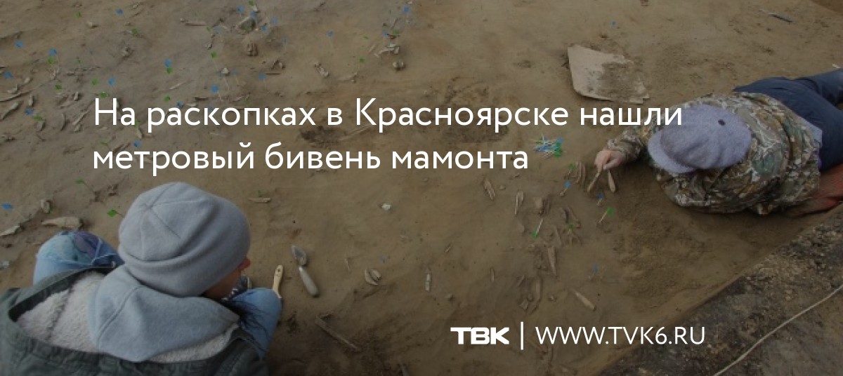 На раскопках в Красноярске нашли метровый бивень мамонта