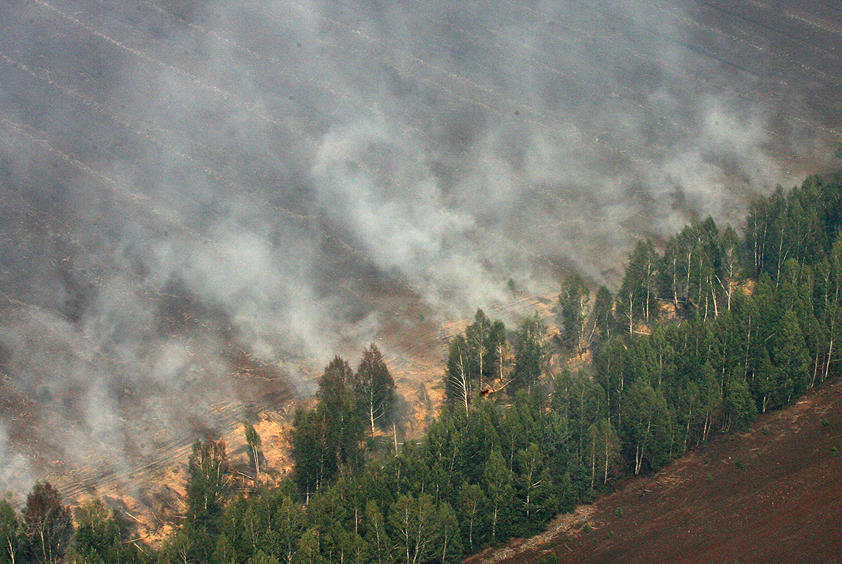 Вид с вертолета на торфяные пожары в Шатурском районе, август 2010 года. Фото: Александра Мудрац / ТАСС
