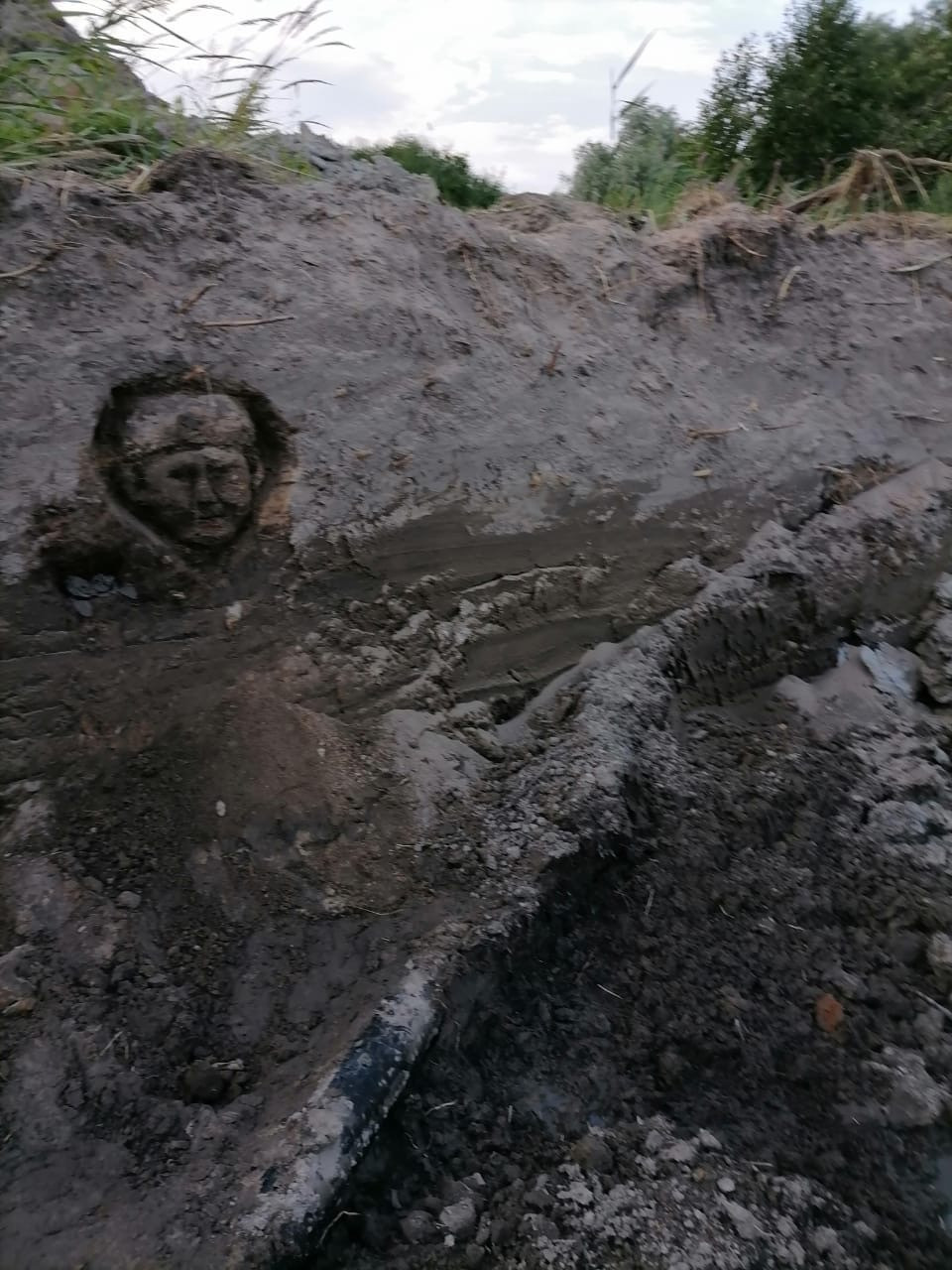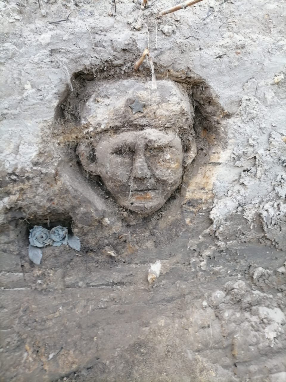 У Рва появилось лицо! Девочка из Татарстана сотворила его в земле Рва. Когда происходят такие вещи, всегда задумываешься. Почему одни могут видеть, чувствовать, сопереживать, а другим только потерянные бабки болят. Вот оно, лицо Рва, наверное, оттуда, из черной земли, смотрят на нас одни и с неба другие. Хотя нет, они все смотрят с неба, а это лицо Рва. Он очень долго хранил их тела, он воевал вместе с ними, и Ров — он тоже солдат.