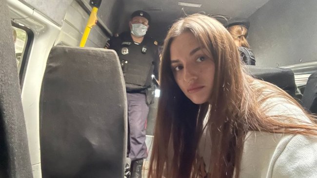 Флорес везут в отдел полиции по району Котловка. Какое нарушение ей вменяют, неизвестно.